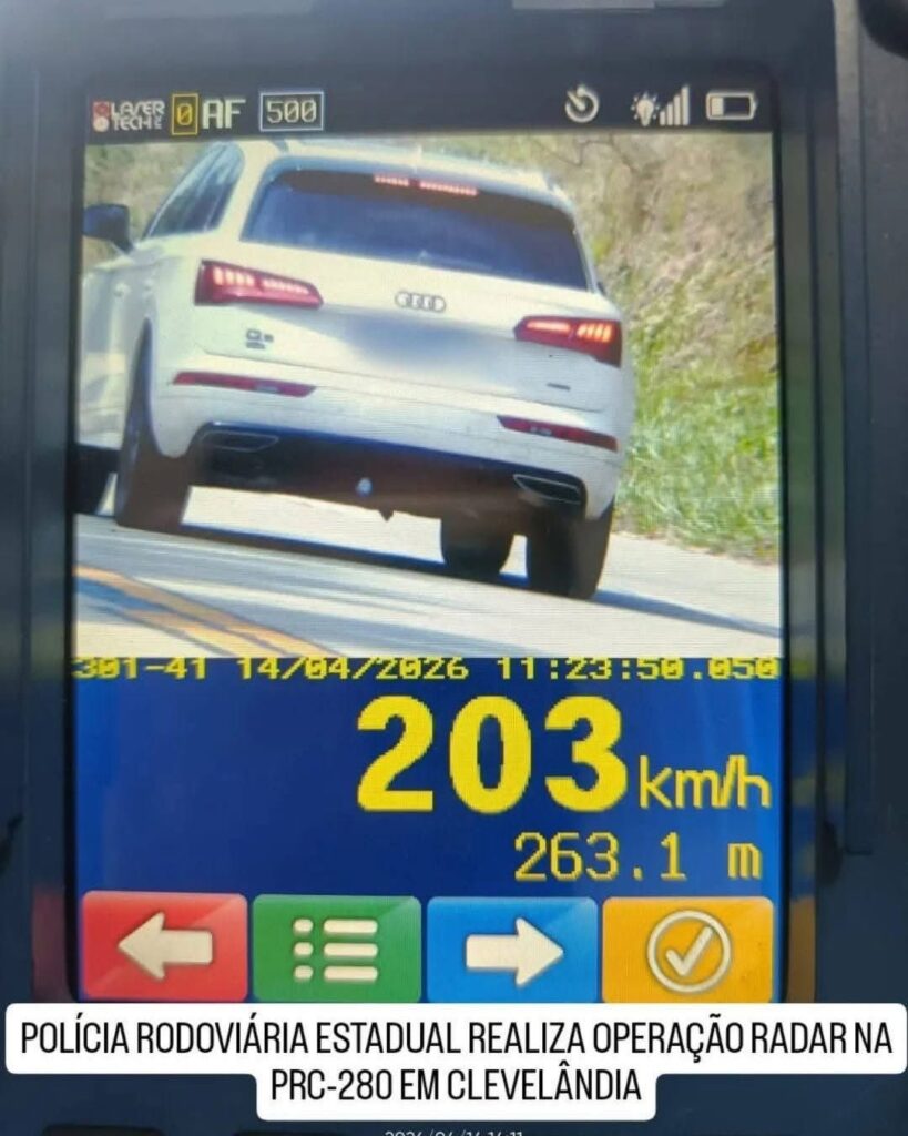 Lar Geral Absurdo na PRC-280: radar flagra carro a 203 km/h e dezenas de motoristas acima do limite em Clevelândia