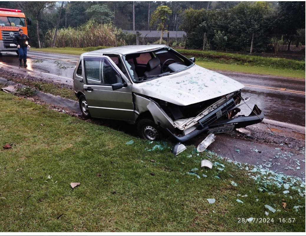 De acordo com testemunhas, o veículo saiu da pista na saída de uma curva e colidiu com uma valeta de drenagem, resultando em ferimentos leves nos ocupantes. O acidente aconteceu sob chuva, o que pode ter contribuído para a perda de controle do carro.