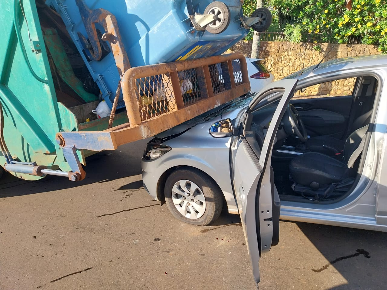O condutor do carro não conseguiu parar a tempo e bateu na traseira do caminhão. Um trabalhador que fazia a coleta foi atingido, sofreu ferimentos, foi socorrido pelo SAMU e Corpo de Bombeiros e encaminhado ao Hospital Regional. A Polícia Militar registrou a ocorrência. O trânsito na Rua São Paulo, que é binário ficou interditado até a retirada dos veículos.