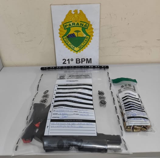 A equipe Bravo da 1ª Companhia do 21º Batalhão foi até o local e realizou a abordagem do suspeito. Durante as diligências, os policiais localizaram a arma no interior de um veículo que estava estacionado. O homem apresentou apenas o registro da pistola, mas informou não possuir o porte.