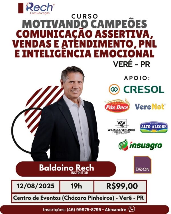 ByRedação12 de agosto de 2025📢 Verê recebe curso “Motivando Campeões” com foco em comunicação, vendas e inteligência emocional A cidade de Verê será palco de um evento...