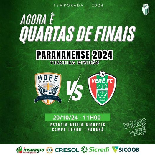 ByRedação24 de outubro de 2024Na tarde deste domingo a equipe do Verê FC vai realizar o primeiro jogo das quartas de finais do campeonato Paranaense 3ª divisão....