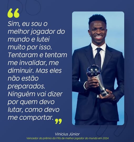 ByRedação31 de dezembro de 2024O brasileiro Vinícius Júnior, jogador do Real Madrid, venceu o prêmio da Fifa de melhor jogador do mundo em 2024. A premiação ocorreu...
