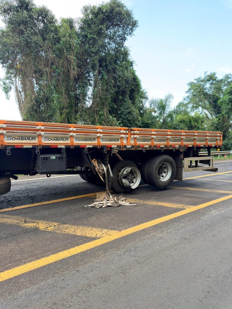 Com o impacto, a parte frontal da Saveiro ficou completamente destruída. O caminhão, com placas de Palmas e que trafegava no sentido Pato Branco, sofreu danos no primeiro eixo da carroceria e teve pneus traseiros estourados.