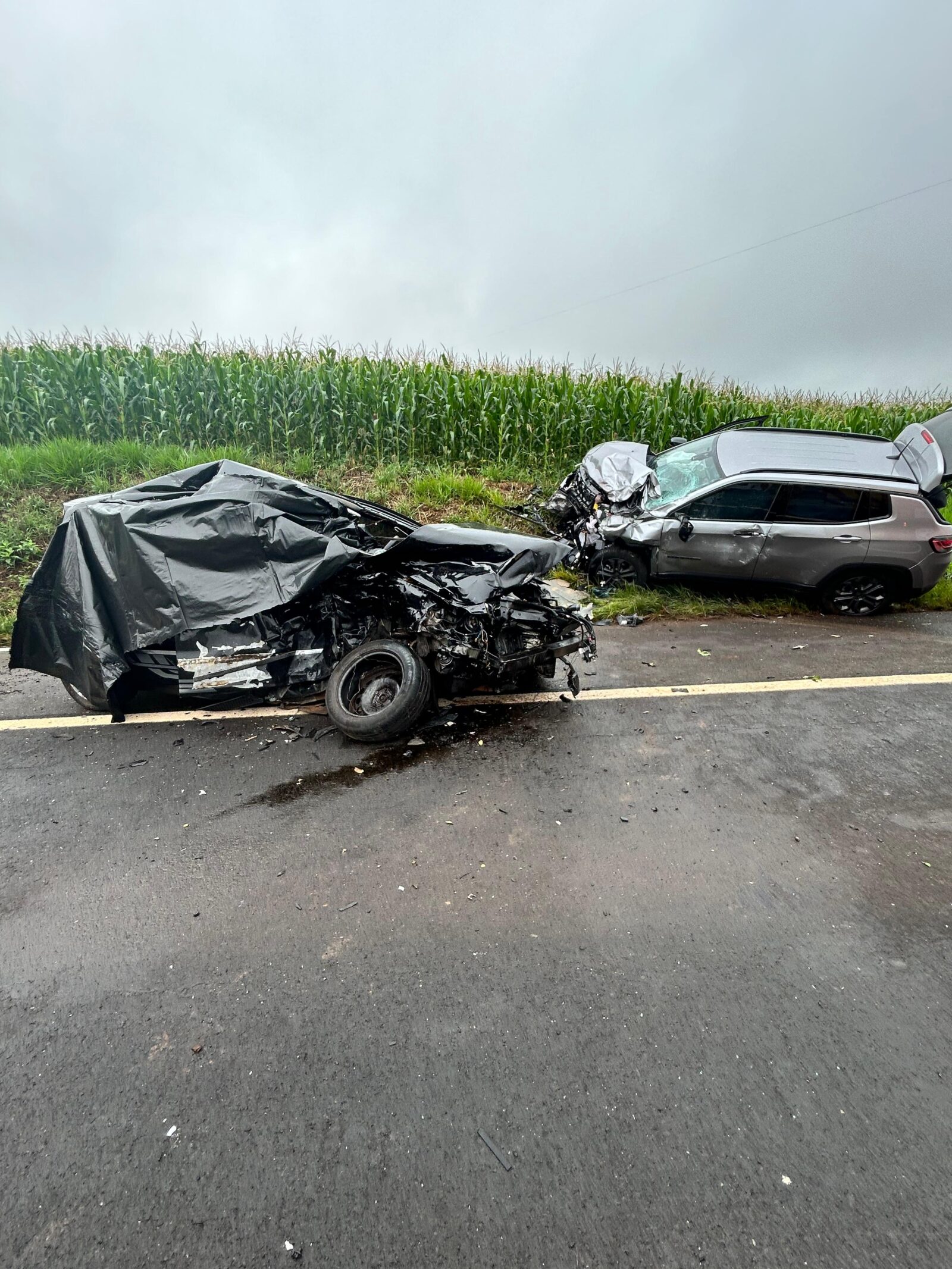 De acordo com informações repassadas pelo repórter Adelino Guimarães, da Rádio Voz, a colisão foi frontal e envolveu um Volkswagen Fox e um Jeep Renegade.