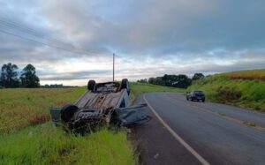 Dois homens ficaram gravemente feridos em um acidente de trânsito por volta das 2h30 da madrugada deste sábado (18). As vítimas de 29 e 30 anos estavam em um automóvel Honda/Civic que acabou capotando e ficando com as rodas para cima na PR-158 no trecho entre Coronel Vivida e Chopinzinho.