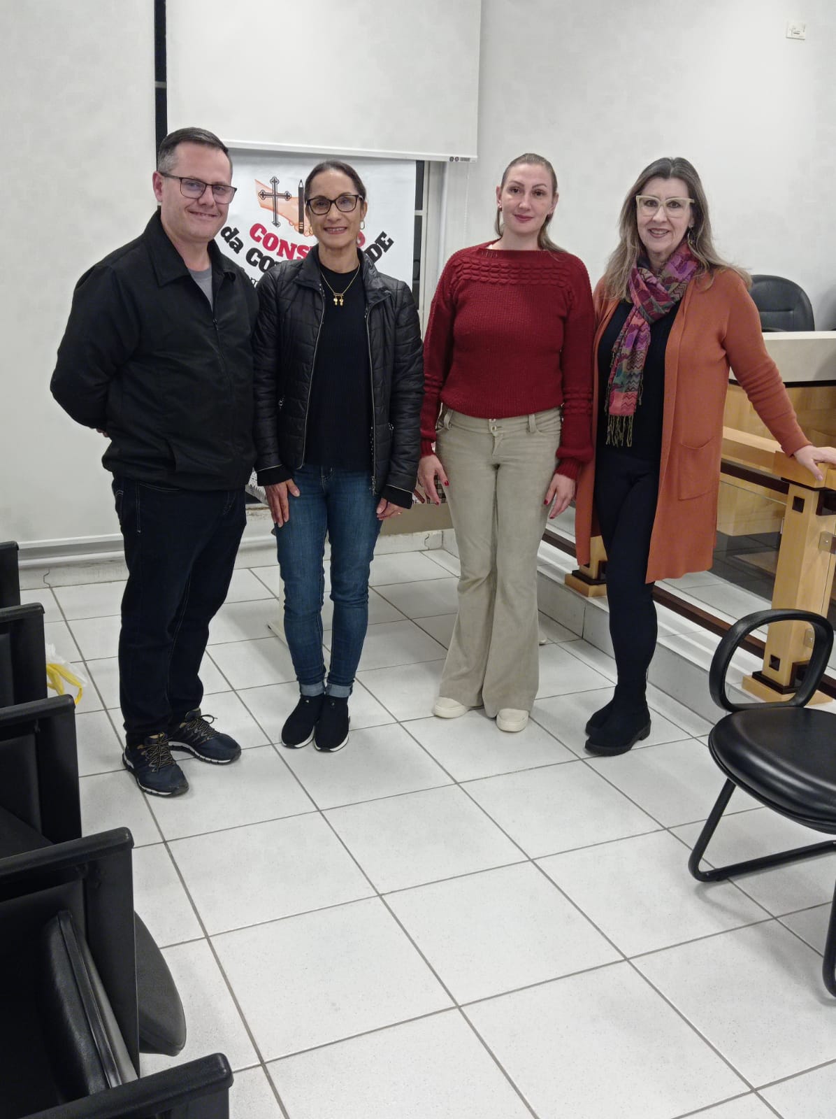 Encerrou hoje na sede do fórum em Dois Vizinhos mais uma etapa do projeto recomeço. O projeto é realizado pelo conselho da comunidade em parceria com órgãos da sociedade civil e universidades. Os participantes, são agressores indiciados por violência doméstica, encaminhados pela vara criminal, após audiências onde os mesmos são ouvidos. O projeto consiste em uma série de 5 encontros com diversos profissionais que abordam e explicam sobre o tema aos participantes.