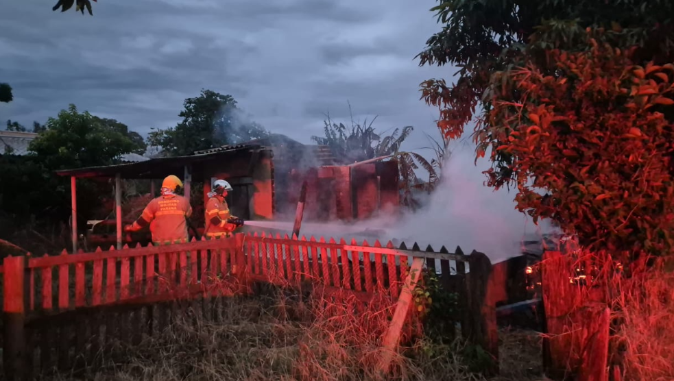 As chamas atingiram uma residência de madeira, que estava desabitada e acabou sendo completamente consumida pelo fogo. Quando as equipes do Corpo de Bombeiros do Paraná chegaram ao local, o imóvel já havia sido destruído, restando apenas o trabalho de rescaldo para evitar novos focos.