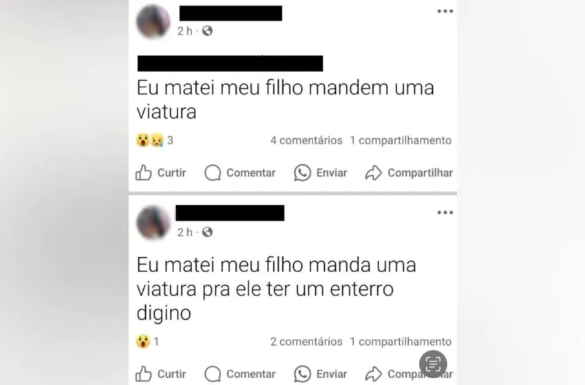 “Eu matei meu filho, mandem uma viatura para ele ter um enterro digno”, disse no post.