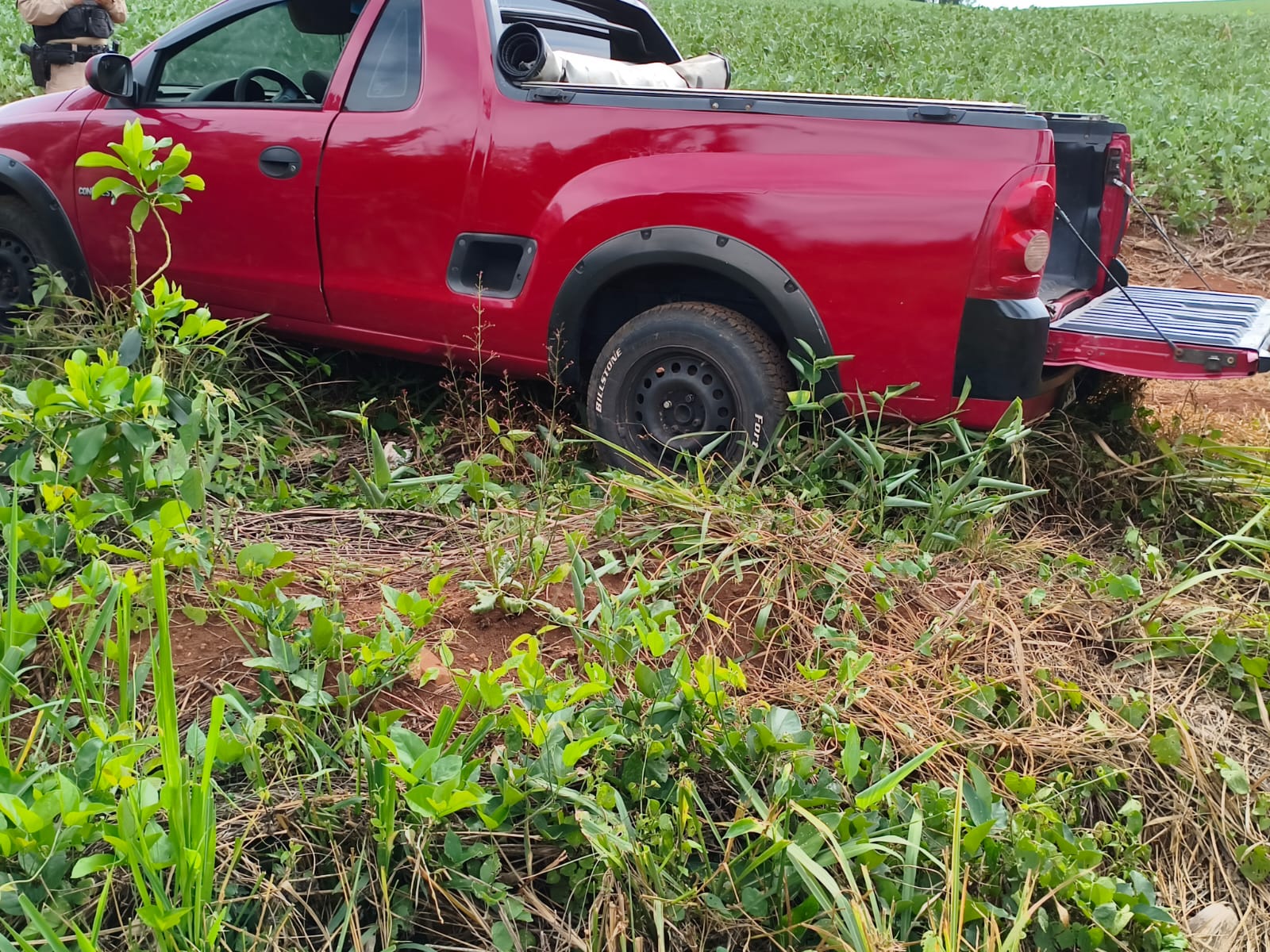 A perseguição seguiu até as proximidades da localidade do Bananal, onde o motorista abandonou o veículo em meio a um milharal e fugiu a pé para uma área de mata. Apesar das buscas, ele não foi localizado até o momento.