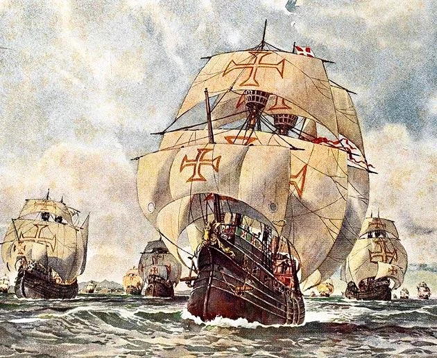 Comandados por Pedro Álvares Cabral, uma frota de 13 embarcações (três caravelas, nove naus e mantimentos) e cerca de 1500 tripulantes saíram de Lisboa, capital de Portugal, no dia 08 de março de 1500.