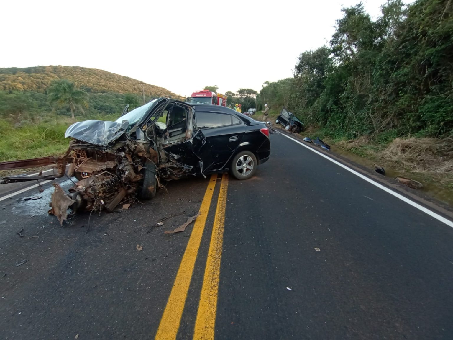 Um homem de 31 anos e uma criança de quatro meses morreram em um grave acidente de trânsito na madrugada deste domingo (16), na rodovia SC-480, em Ipuaçu, no Oeste de Santa Catarina. Conforme informações do Corpo de Bombeiros, a colisão frontal foi entre um Renault/Sandero e um GM/Prisma.