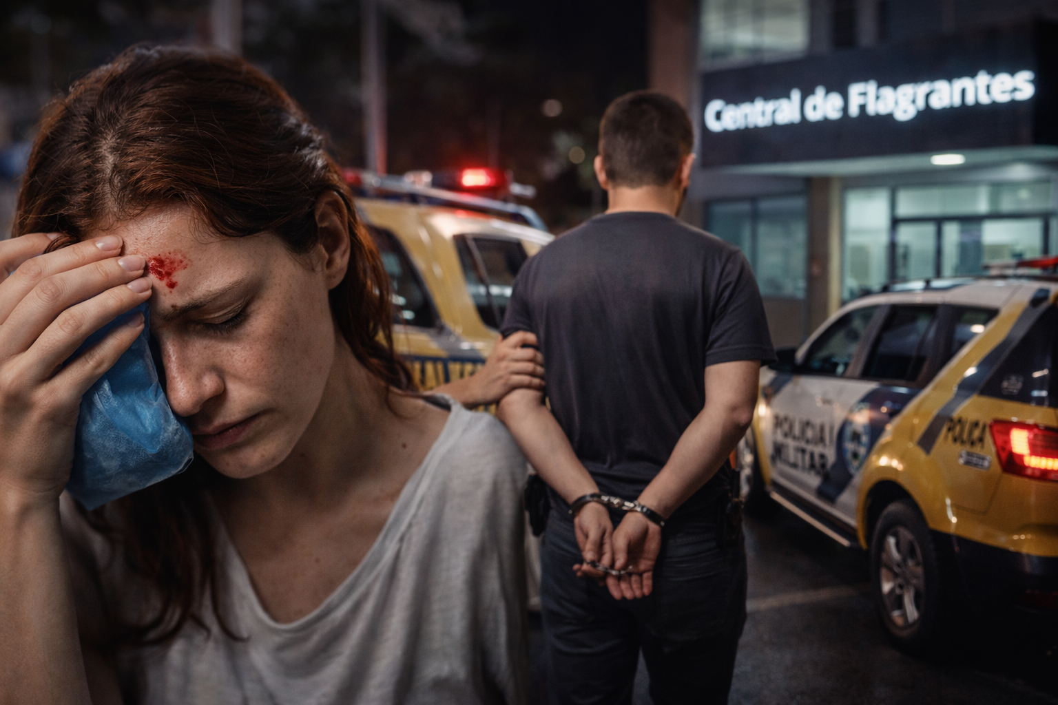O homem recebeu voz de prisão e foi encaminhado à Central de Flagrantes para os procedimentos legais cabíveis. A mulher foi medicada e recebeu orientações quanto às medidas de proteção previstas na legislação.