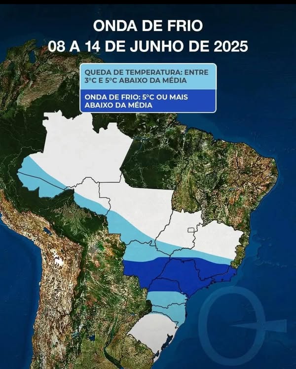 Diferente da última, esta nova onda de frio não será tão intensa e abrange menos áreas, porém, o período de atuação deve ser maior: começando no domingo, 08 de junho até sábado, 14.