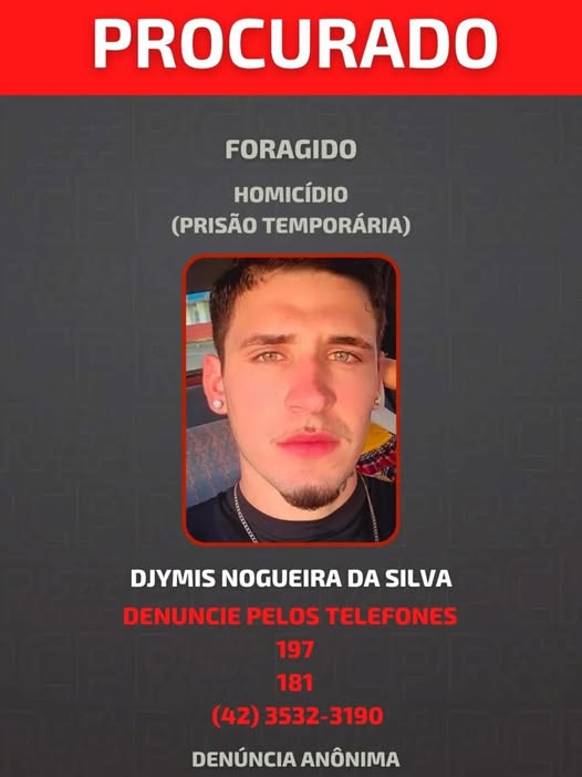 A Polícia Civil do Paraná (PCPR) divulgou, nesta quarta-feira (30), a foto de um homem, de 22 anos, foragido pelo homicídio de Igor Pires de Lima Campos, de 24. O crime ocorreu na madrugada do dia 12 de julho, em São Mateus do Sul, no Sudoeste do Estado.
