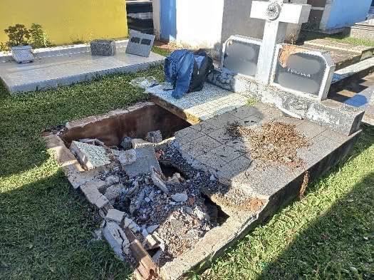 A Polícia Militar foi acionada na manhã desta terça-feira, 14, após o responsável pela manutenção do Cemitério Municipal de São José do Cedro encontrar uma mochila sobre um túmulo aberto, na Avenida Rio Grande do Sul.
