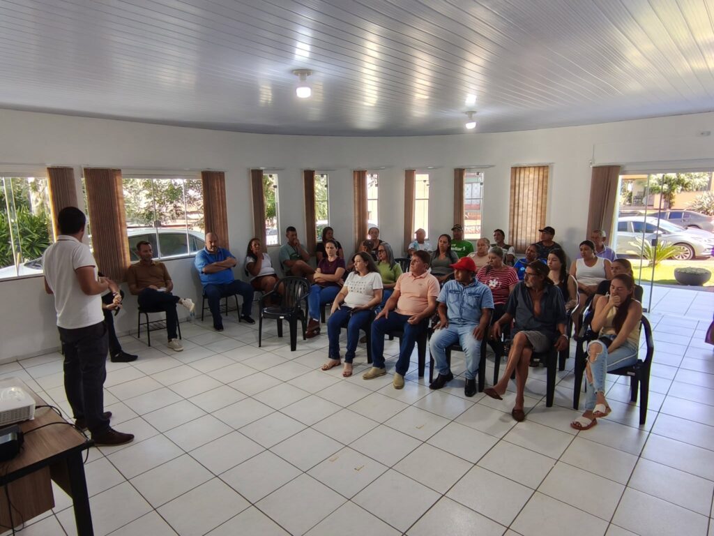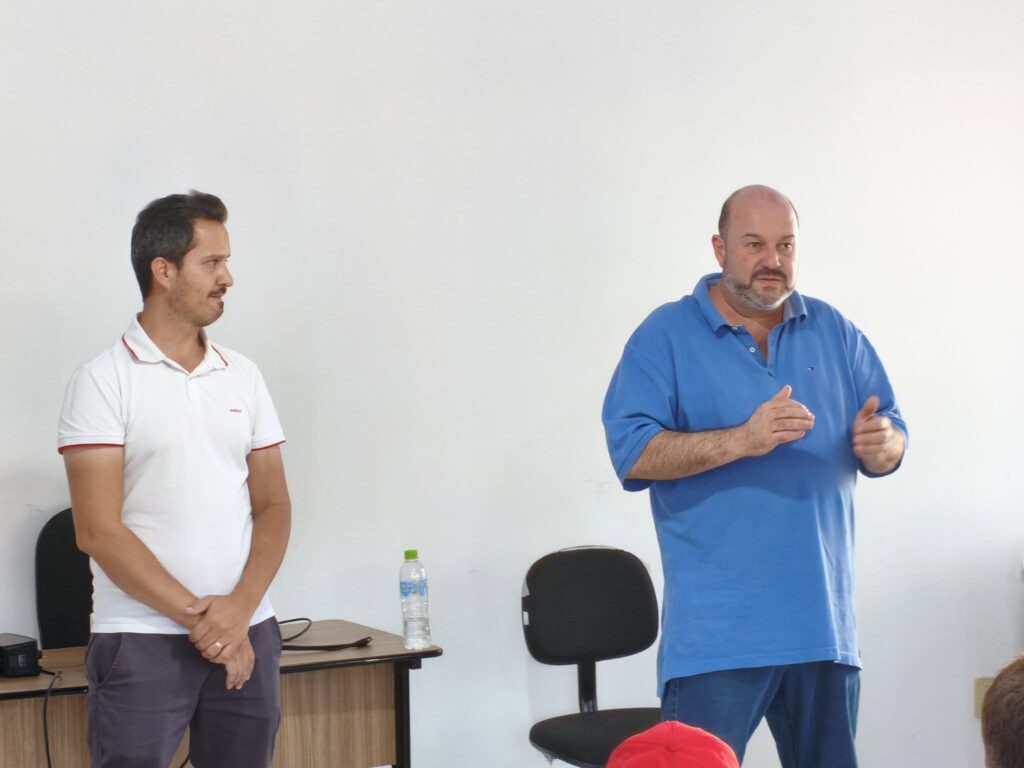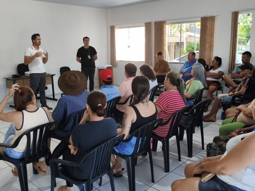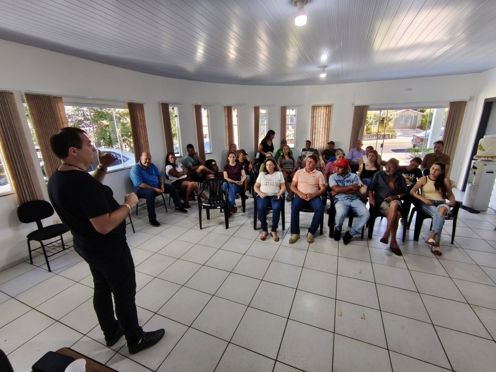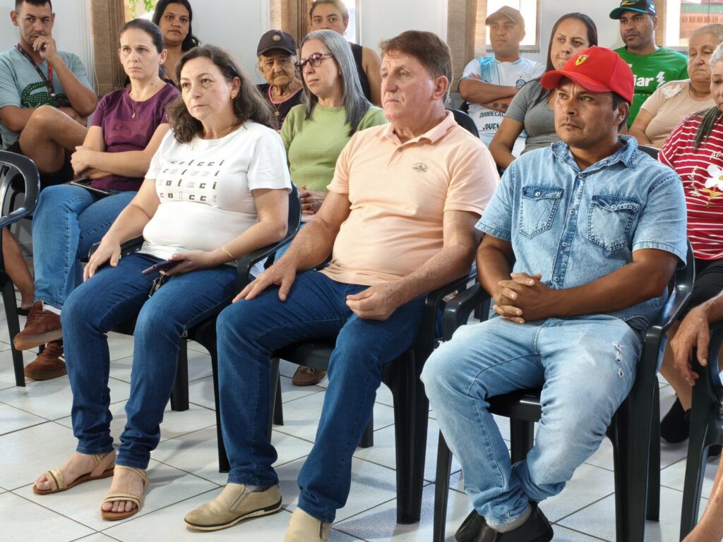 Representantes da COHAPAR, o técnico Eduardo Cioatto e a engenheira Cassiana, participaram da reunião e esclareceram dúvidas dos moradores sobre o andamento do projeto e as próximas etapas da construção das casas.