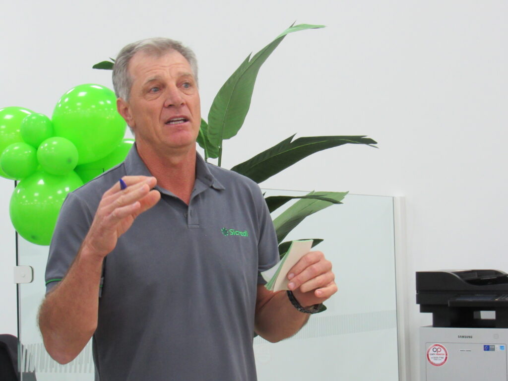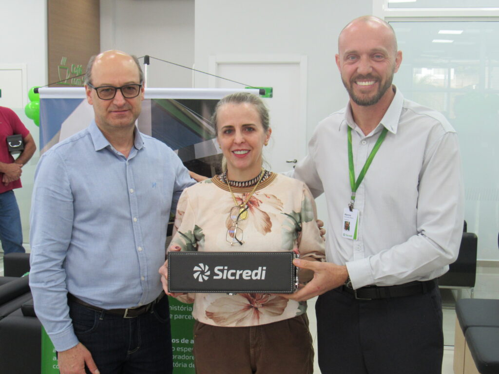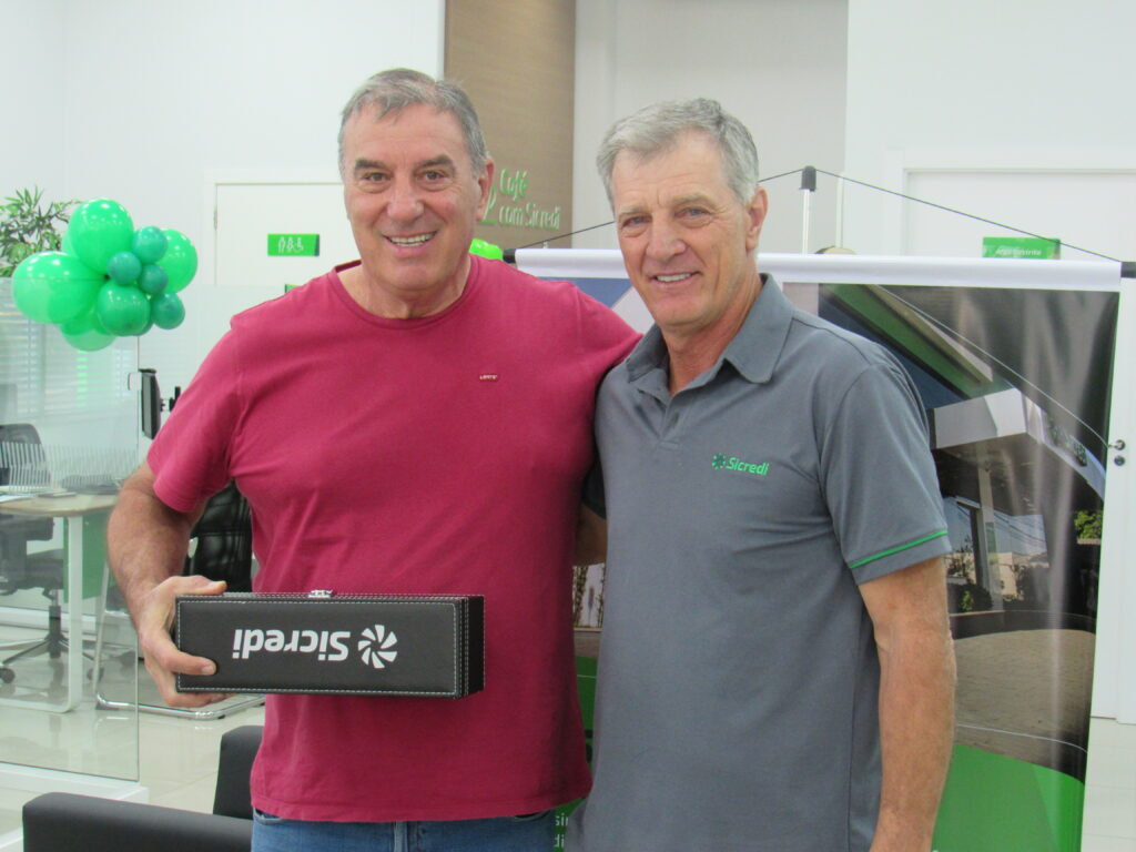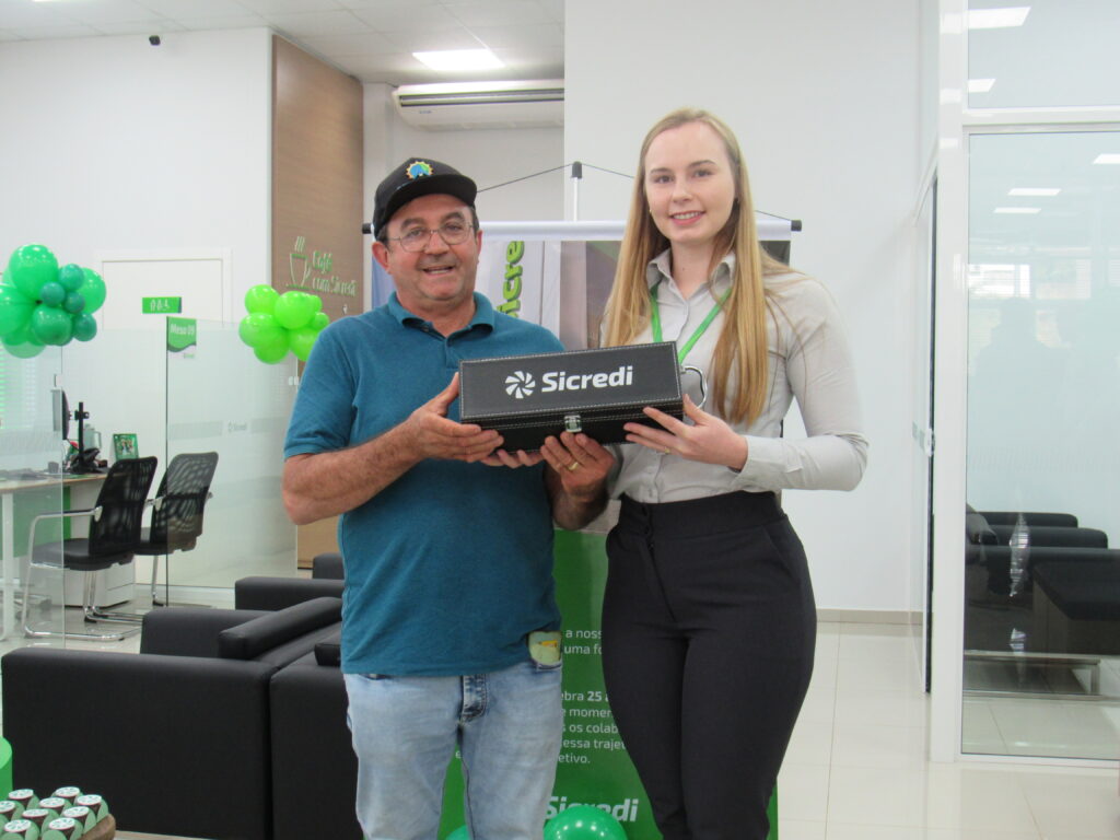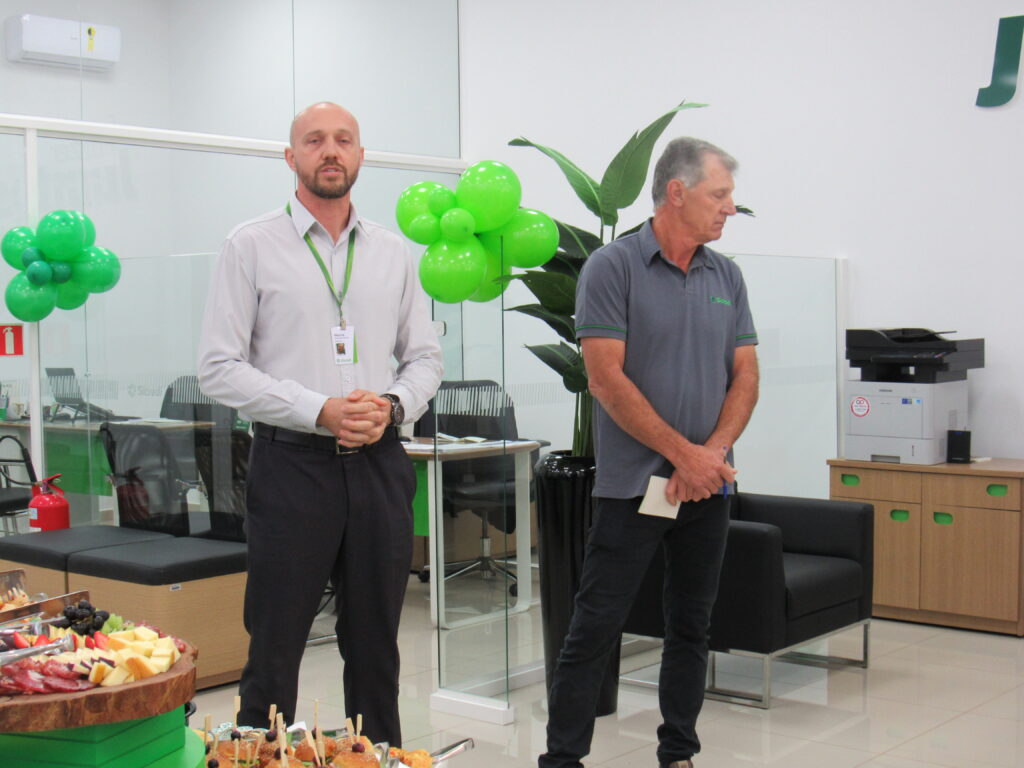 Durante este quarto de século, a agência se firmou como pilar econômico e cooperativo. Em evento significativo, o gerente Márcio Roberto Machado e o conselheiro Deyves Zolet agradecem aos presentes. Reconheceram os primeiros 25 cooperados com uma lembrança simbólica, um gesto simples, eficiente e cheio de significado.