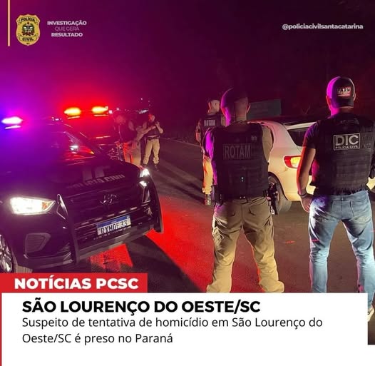 Nesta terça-feira (26/11/2024), a Polícia Civil, através da Delegacia de Investigações Criminais (DIC) de São Lourenço do Oeste, com apoio da Polícia Militar do Estado do Paraná (ROTAM) prendeu um homem (32 anos) quando chegava na cidade de Vitorino/PR.