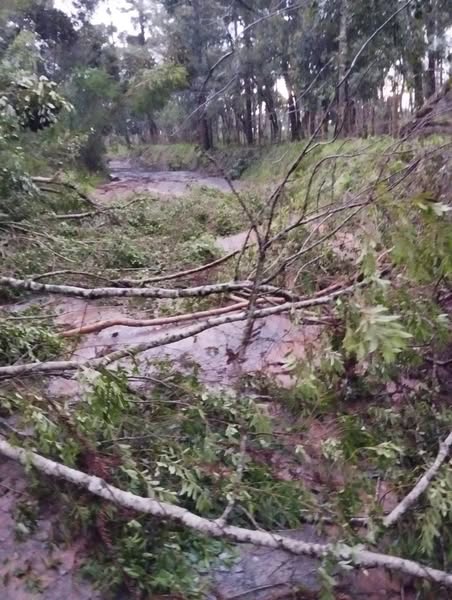 Na Estrada dos Maias, que liga as comunidades de Bracatinga e Vicente Machado, árvores caíram e bloquearam a passagem.