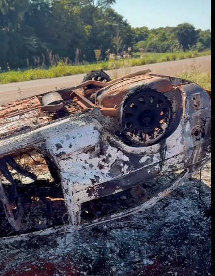 Veículo capota e pega fogo na madrugada de domingo de Páscoa em Dois Vizinhos