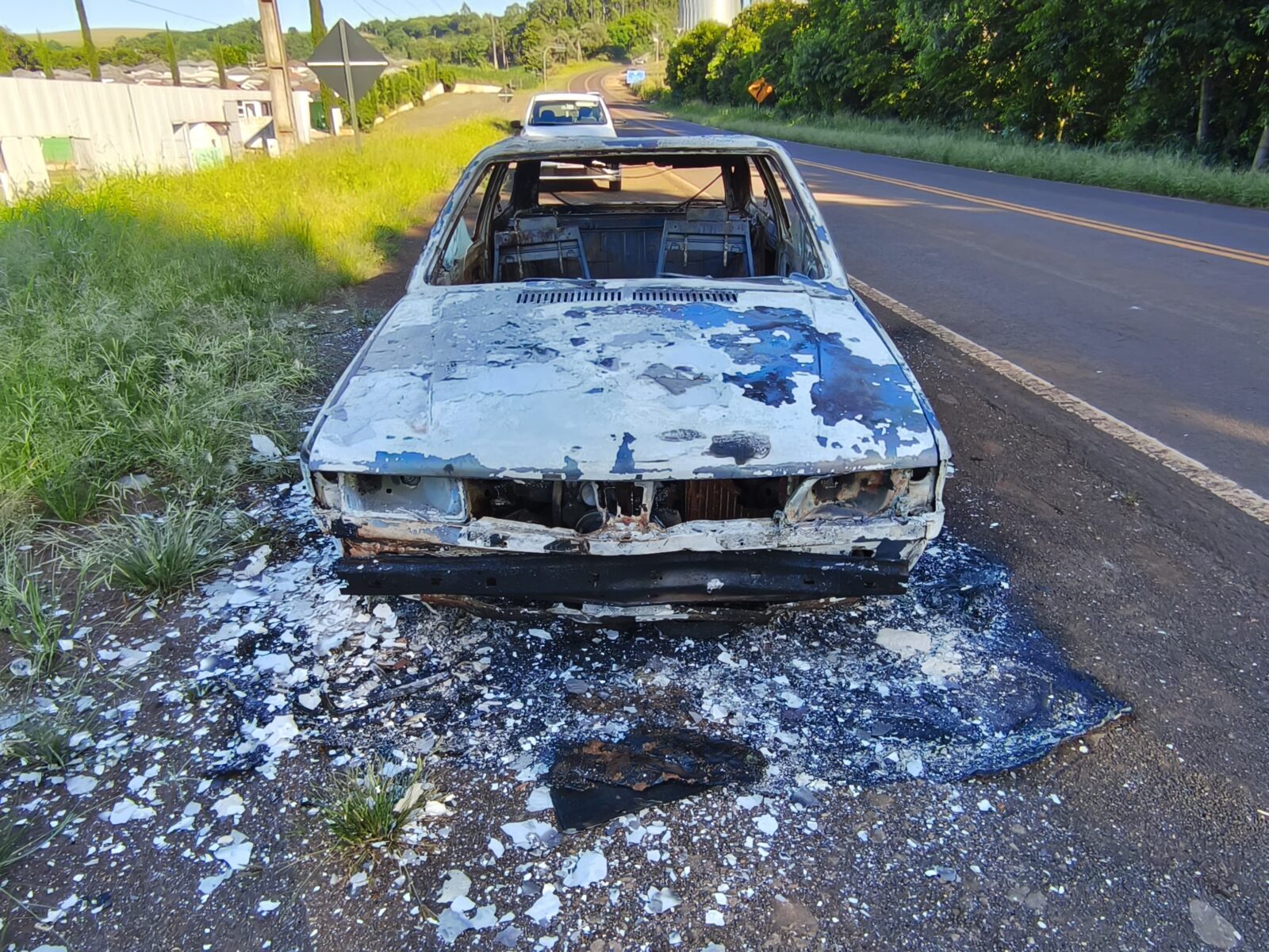 Informação complementar que o veículo destruído pelas chamas, já estava há alguns dias parado no local, provavelmente por falha mecânica.
