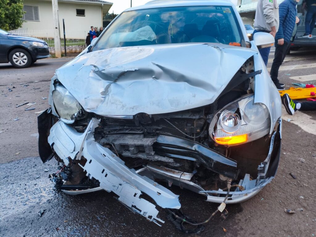 No final da tarde de hoje (26/08) um grave acidente aconteceu no cruzamento da Av. Getúlio Vargas com a Rua Leopoldo Preilipper, a esquina da Campo e Lavoura. O fato aconteceu por volta das 17.50hs e envolveu um Chevrolet Onix branco e um volkswagen jetta.