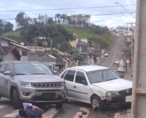 Agora pela manhã por volta de 7.30 na esquina da Rua Ângelo Carniel com a Rua Leopoldo Preilliper, uma colisão entre dois veículos.