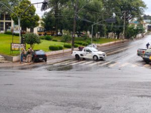 Uma colisão entre dois veículos ocorreu no final da manhã deste sábado (29/03) às 12hs no cruzamento da AV. Getúlio Vargas com a a Av. Luis Francisco Paggi.