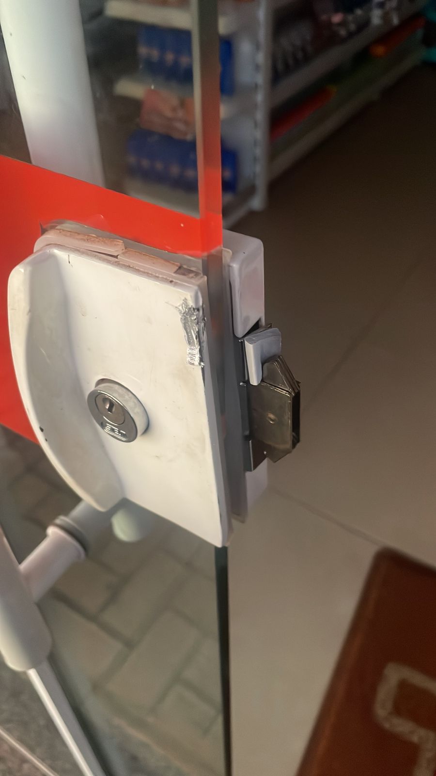 As câmeras, externa e interna registram a ação que durou poucos minutos, mas o suficiente para que fosse levado uma quantia em dinheiro que estava no caixa e também o prejuízo causado na porta.