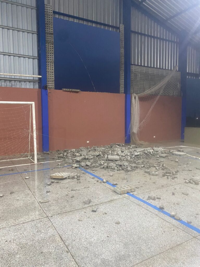 Outro ponto que chamou atenção foi na Escola São João Batista de La Salle, onde uma parede do ginásio acabou desabando. Apesar do susto, ninguém ficou ferido, já que não havia pessoas no local no momento.