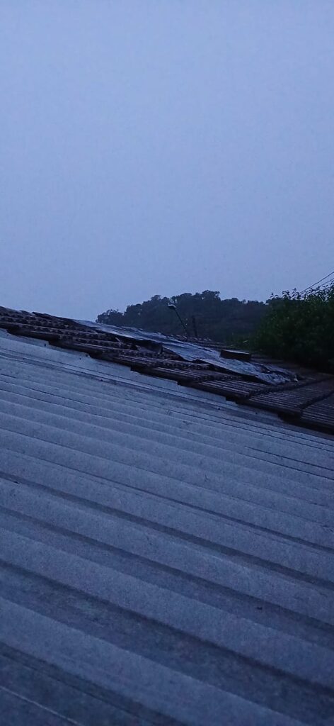 Algumas residências tiveram prejuízos, principalmente com danos em telhados, devido à intensidade da tempestade.