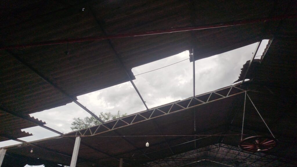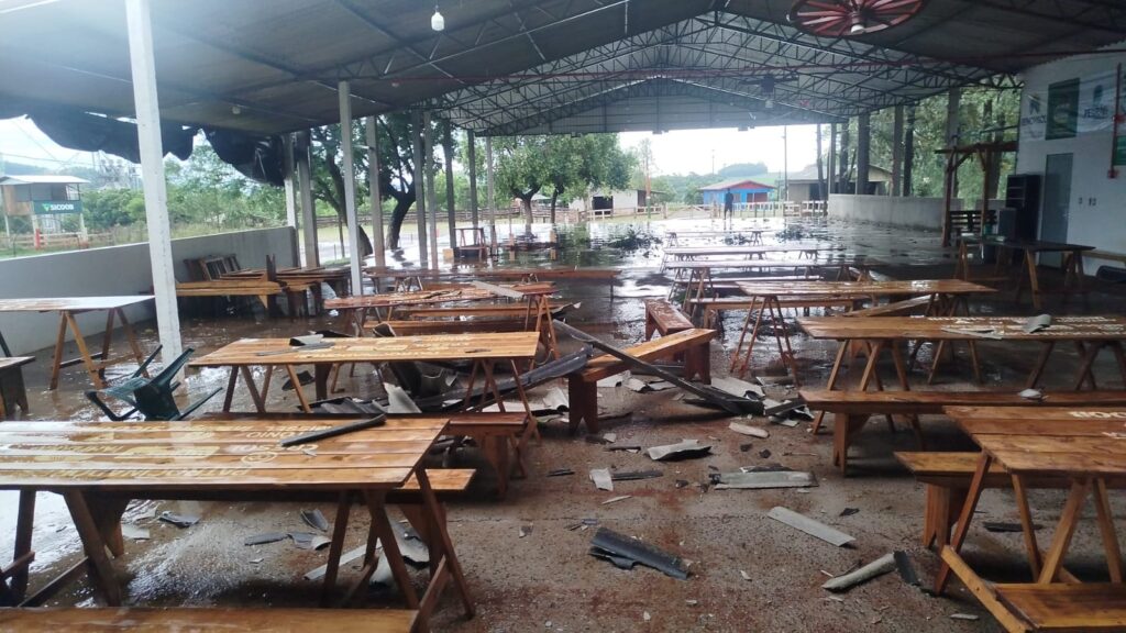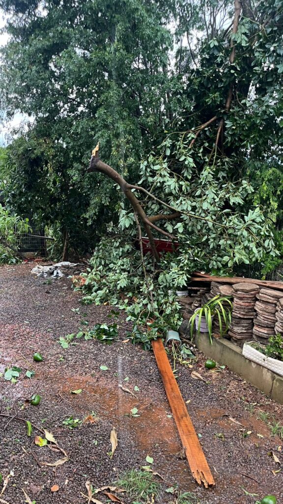 Entre os principais danos, houve registro de árvores caídas em várias regiões da cidade. No CTG, parte do telhado foi arrancada pela força do vento. Já no bairro São Joaquim, moradores ficaram sem energia elétrica, e algumas residências registraram danos no telhado, situação que também atinge a comunidade de Sede Progresso.