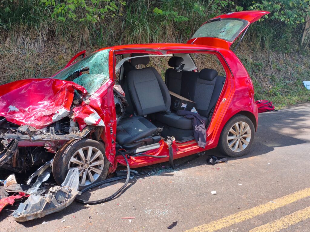 A colisão envolveu um Volkswagen Fox vermelho, que seguia no sentido Dois Vizinhos, e uma Toyota Hilux, que trafegava em direção a Verê.