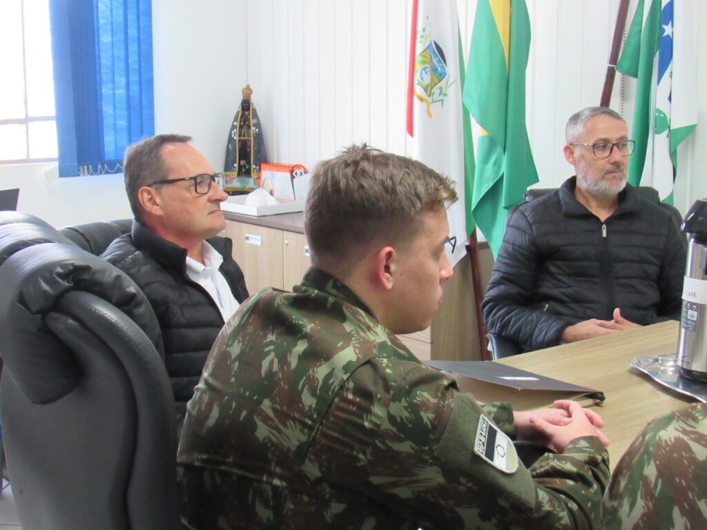 Na manhã desta quinta-feira, 21 de agosto, às 10 horas, o gabinete do prefeito de Verê foi palco de um encontro importante para a área do serviço militar. O Primeiro Tenente e Oficial Mobilizador do Posto de Recrutamento e Mobilização (PRM) de Cascavel, Valmir Ferregato, acompanhado pelo Cabo Rockembach e pelo Soldado Mocinski, estiveram no município para uma visita técnica à Junta de Serviço Militar (JSM).