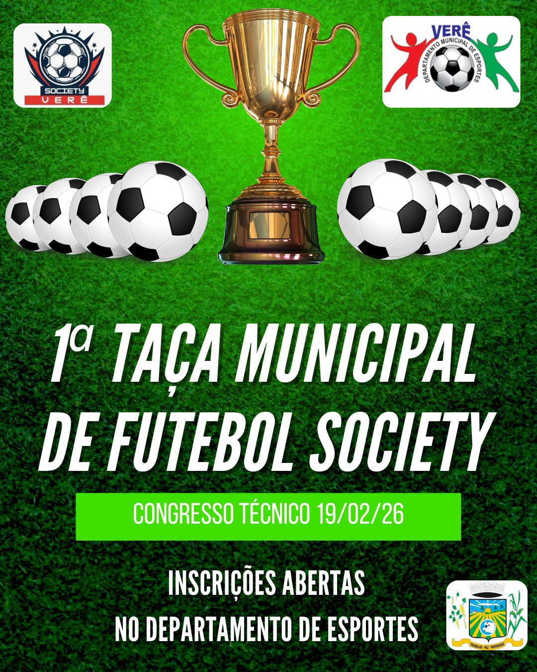 O município de Verê realizará a 1ª Taça Municipal de Futebol Society, competição esportiva organizada pela Prefeitura de Verê, por meio do Departamento de Esportes, em parceria com o Society Verê. A iniciativa busca fortalecer o esporte local, incentivar a prática esportiva e promover a integração entre atletas do município.