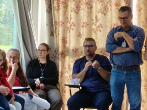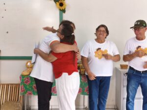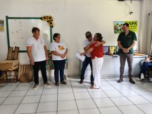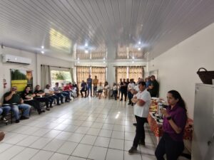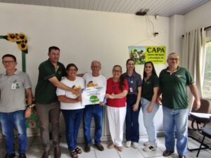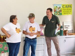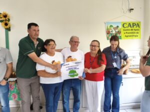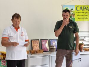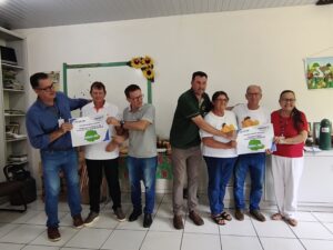 Após a fala de representantes da sesecretaria municipal de agricultura, IDR e da SEAB, os produtores receberam o certificado SUSAF, e logo após, foi realizada uma degustação com os produtos locais; queijo e mel… “Só faltou o salame hoje” falou um dos representantes, em um momento de descontração.