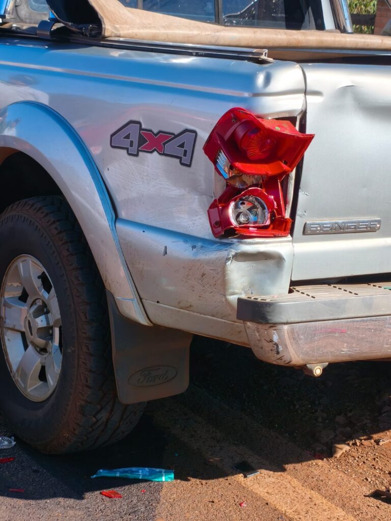 No veículo gol danos na traseira direita, e na camionete danos na traseira esquerda, na motocicleta danos de média monta nos componentes dianteiros e taque de combustível.
