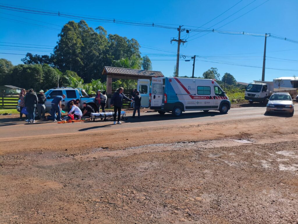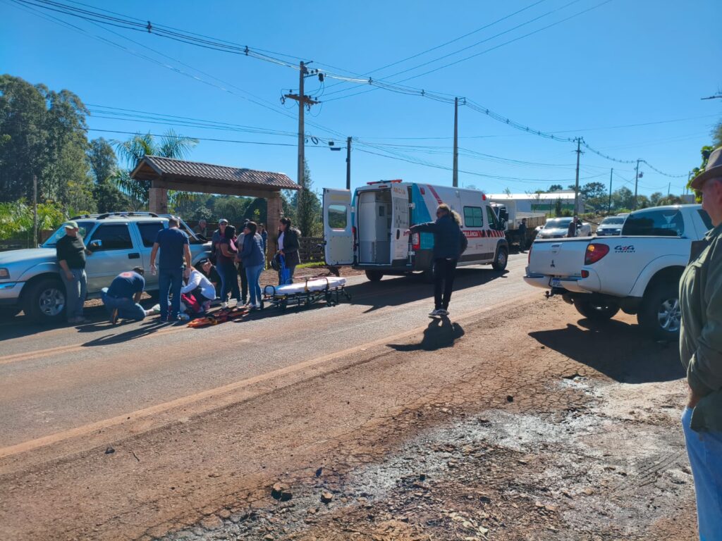 A equipe da secretaria municipal de saúde de Verê foi acionada para realizar atendimento ao motociclista. No local, a equipe realizou a imobilização do condutor da motocicleta, pois o mesmo estava com ferimentos aparentes na perna esquerda e reclamava de dores.