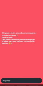 Através de mensagem no whatsapp, o rapaz enviou mensagens de agradecimentos à todos os amigos e familiares.