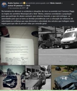 Desde 2017 o problema neste trecho da PR493 vem se arrastando, na época também por ocasião de um acidente, André Santos, através do seu perfil mobilizou a população e realizou a coleta de quase 1700 assinaturas solicitando providências.  Representantes do poder executivo se mostraram à disposição para solucionar o caso, porém, apenas uma placa de sinalização de “60km – Fiscalização eletrônica” foi colocada no local.
