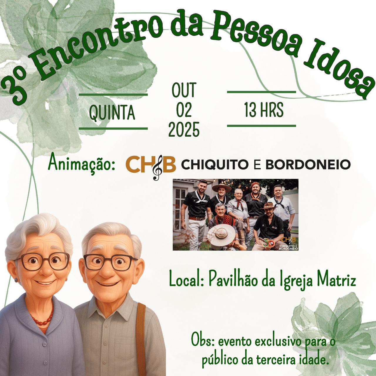 A Administração Municipal de Verê em parceria com a Secretaria Municipal de Assistência Social; realizam no próximo dia 2 de outubro de 2025 (quinta-feira), a partir das 13h, o 3º Encontro da Pessoa Idosa. O evento acontece no Pavilhão da Igreja Matriz e promete reunir a terceira idade em uma tarde de confraternização, alegria e integração.