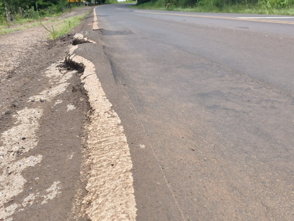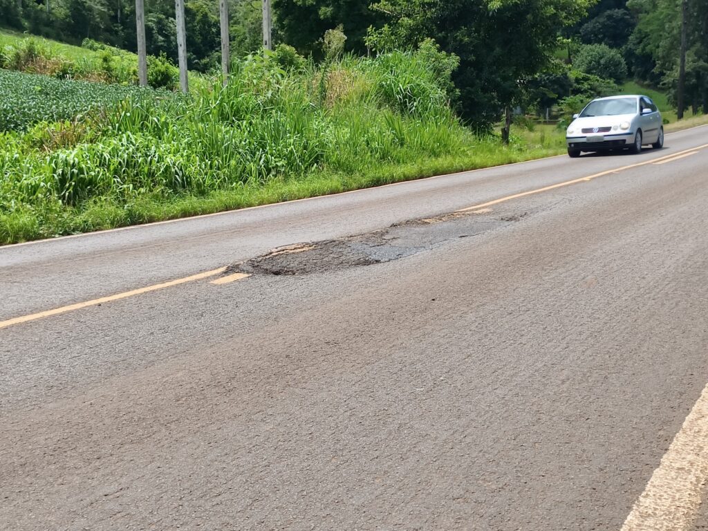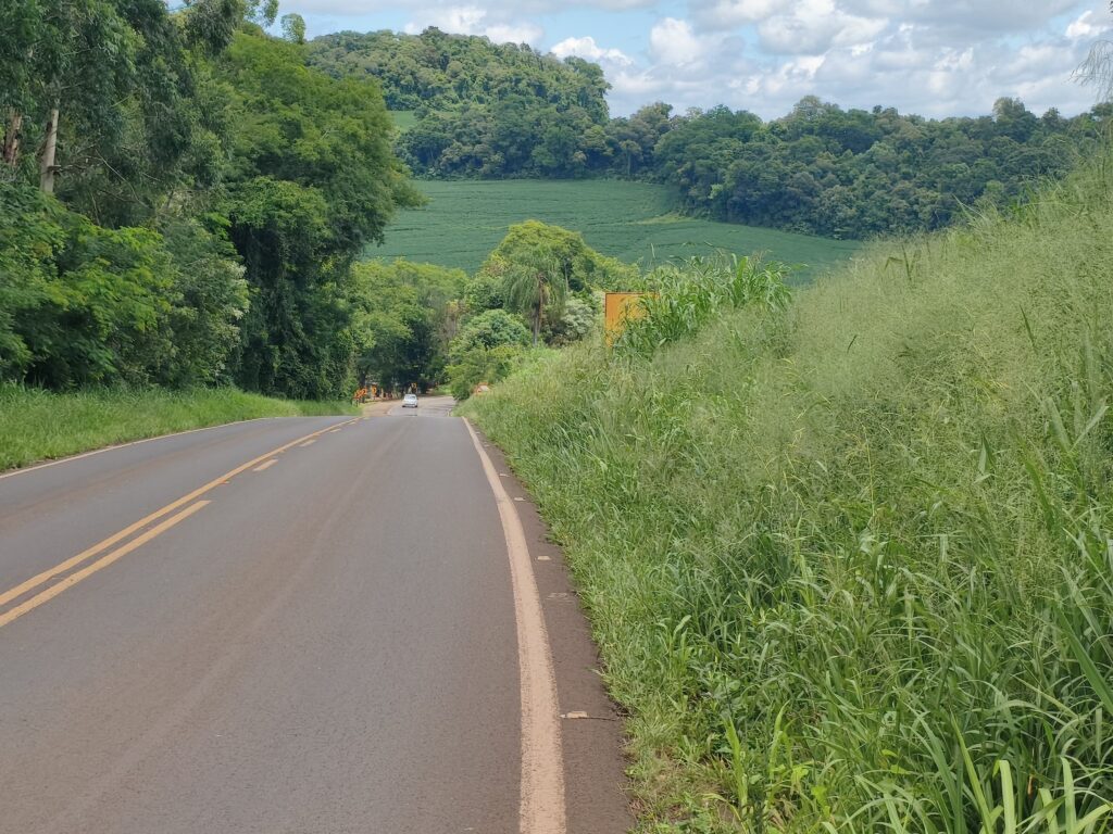 No entanto, no trecho que passa pelo município de Verê, a situação é motivo de preocupação constante. O asfalto apresenta diversos pontos danificados, com buracos e ondulações. Em longos segmentos não há acostamento, o mato alto avança sobre as margens da pista e placas de sinalização vertical ficam parcialmente ou totalmente encobertas pela vegetação.