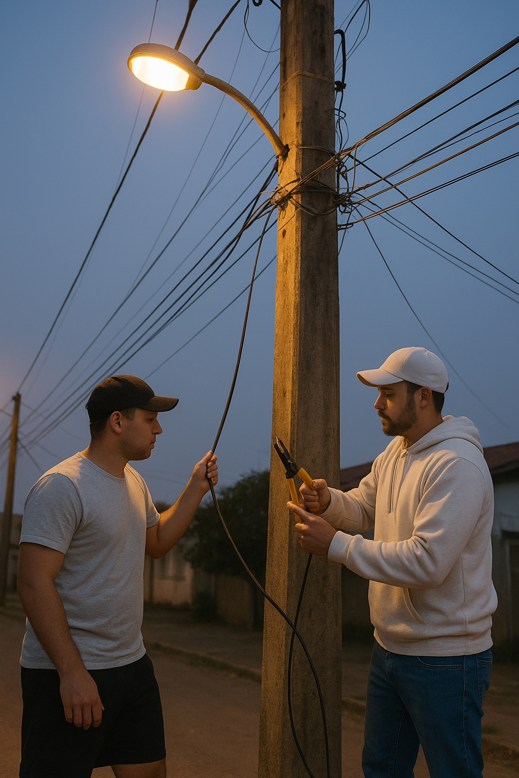 Na madrugada desta sexta-feira (19), por volta das 5h, um morador flagrou a ação de dois homens retirando cabos de cobre de telecomunicação na área central de Verê. O fato ocorreu na Rua Leopoldo Preilliper, onde os suspeitos cortavam os fios conforme alcançavam, e também na Rua Angelo Carniel, onde parte da fiação já havia sido retirada.