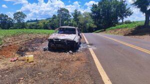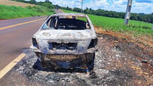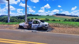 Na manhã desta segunda feira, foi visualizado na PR475, entre a comunidade Vila Colonial e Presidente Kennedy, um veículo que foi totalmente consumido pelas chamas. No local, a constatação de que trata-se de um veículo Siena, totalmente destruído pelo fogo, ainda, pode se observar do lado de fora do veículo o extintor de incêndio, descarregado, que leva a entender que foi utilizado na tentativa de conter as chamas.